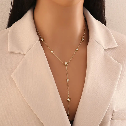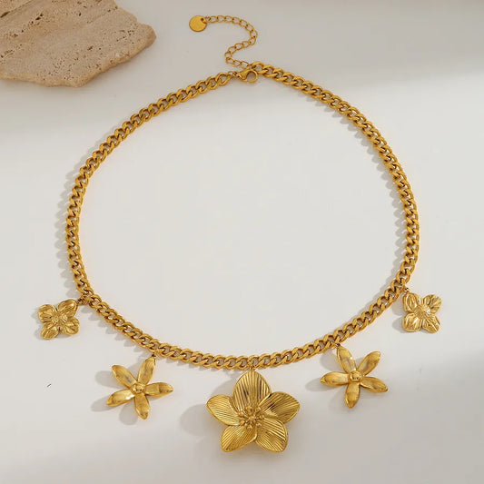 Collier Femme Y en Acier Inoxydable – Pendentif Fleur & Étoile Octogonale Dorée 18K