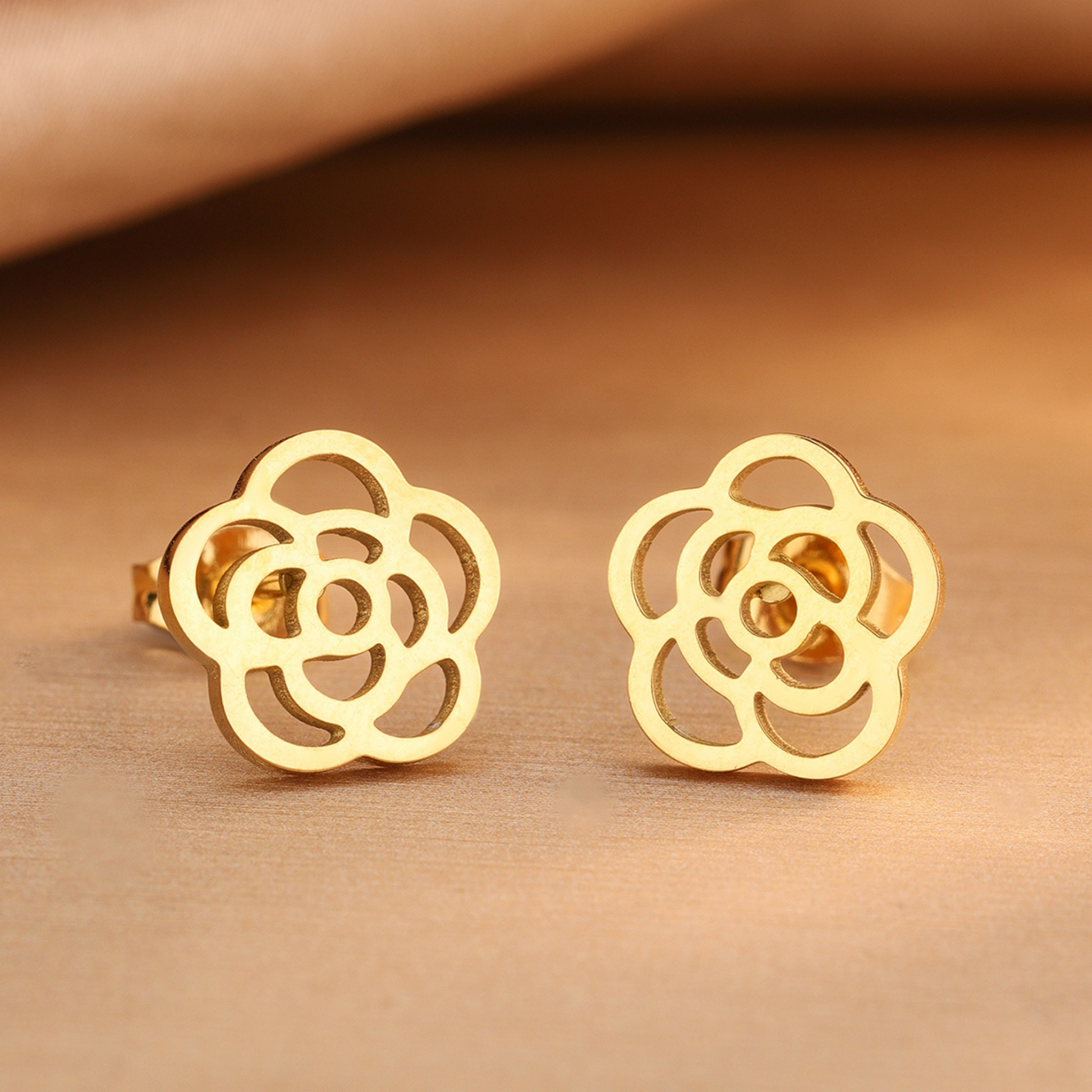 Parure de bijoux florale en acier inoxydable 304 plaqué or 18K – Collier, bracelet et boucles d’oreilles élégants pour femme